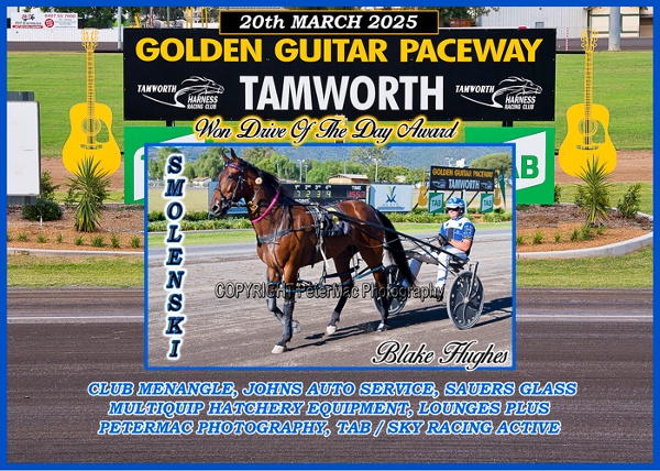 THE PUB DRIVE OF THE DAY: was won by BLAKE HUGHES driving Smolenski from the on-site stables of Dwayne Brown in Race 7 the PeterMac On-Course Photography - Club Menangle Waratah Heat. BLAKE receives a $30.00 Meal Voucher courtesy of sponsor The Pub, Gunnedah Rd Tamworth.