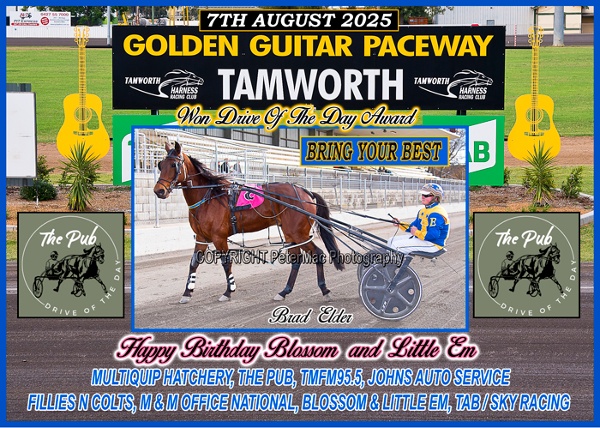 THE PUB DRIVE OF THE DAY: was won by BRAD ELDER driving Bring Your Best from his family's Louth Park Stables in Race 3 the The Pub - Drive Of The Day Pace. BRAD receives a $30.00 Meal Voucher courtesy of sponsor The Pub, Gunnedah Rd Tamworth.